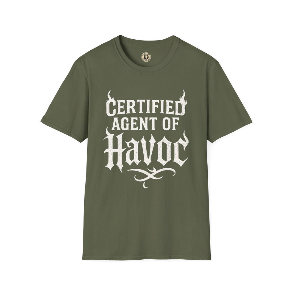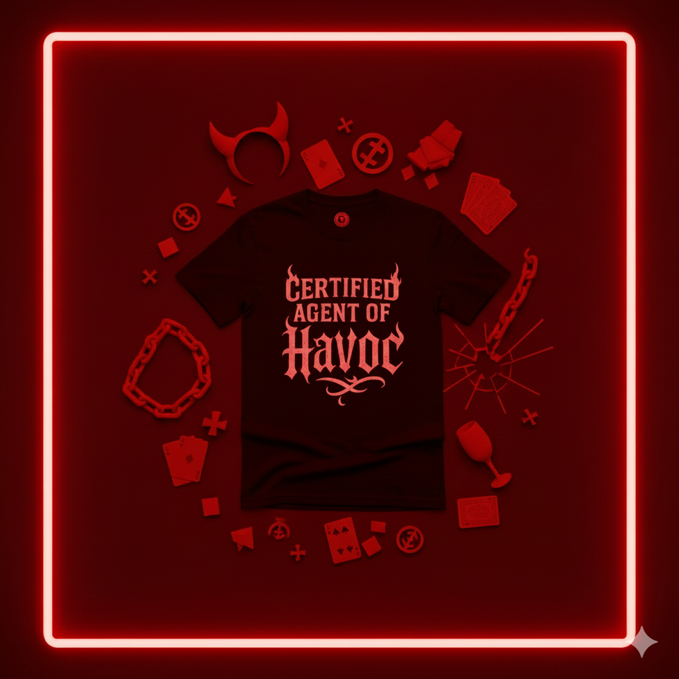 Featuring bold text that reads: âCertified Agent of Chaos â Unqualified. Unhinged. Unapologetic.â ...and the fine print HR wouldnât let you submit: âSpreads Misinformation & Mirth. May Contain Traces of Logic.â âwear it proudly as you inspire confusion at every turn.