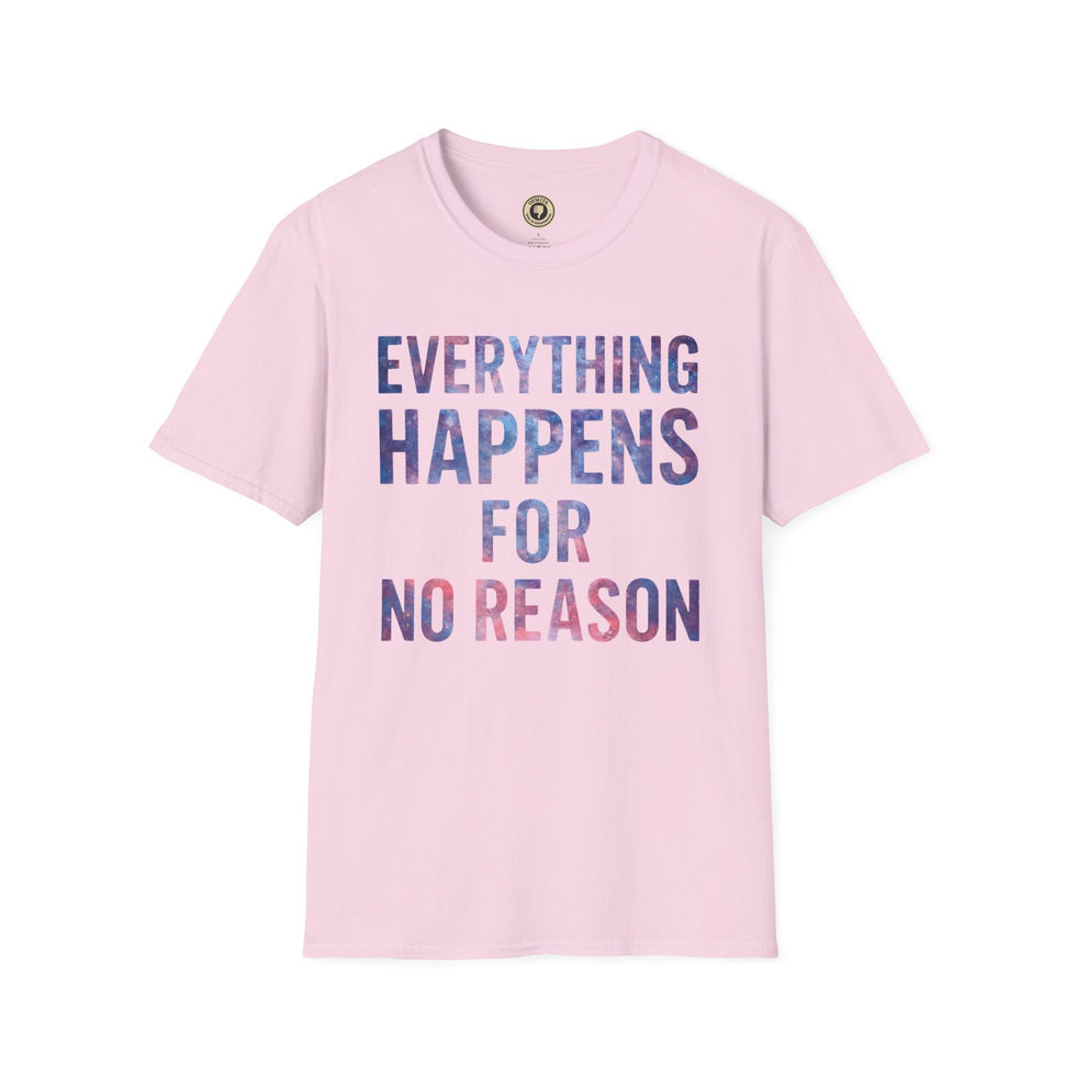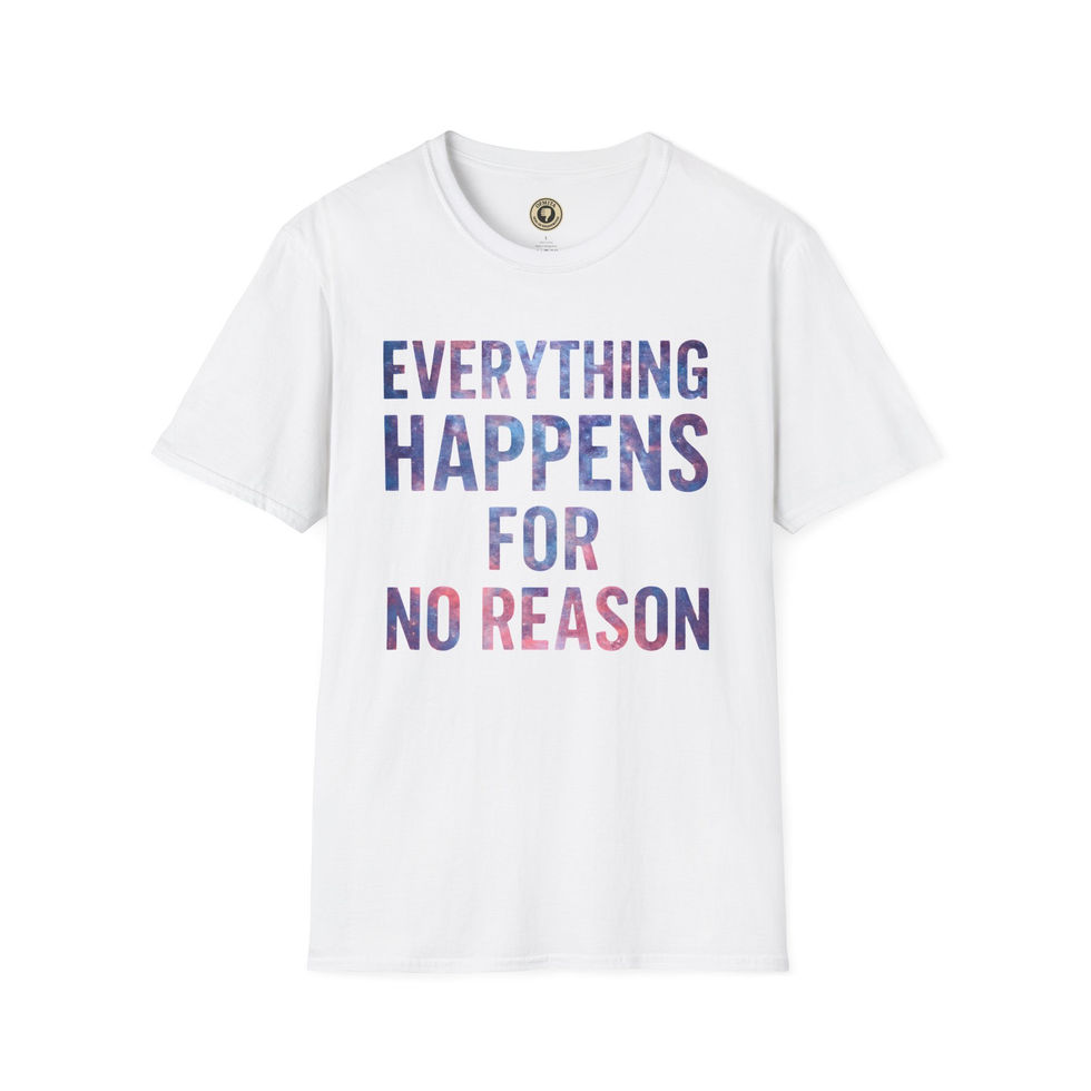 You’ve seen the phrase before, but never like this. “Everything Happens for No Reason” drifts across the fabric in a swirl of nebula hues—purples, blues, and faint starlight pinks that shimmer like a quiet existential crisis. It’s bold, sarcastic, and cosmic in a way that feels both deep and completely meaningless. Exactly as intended.