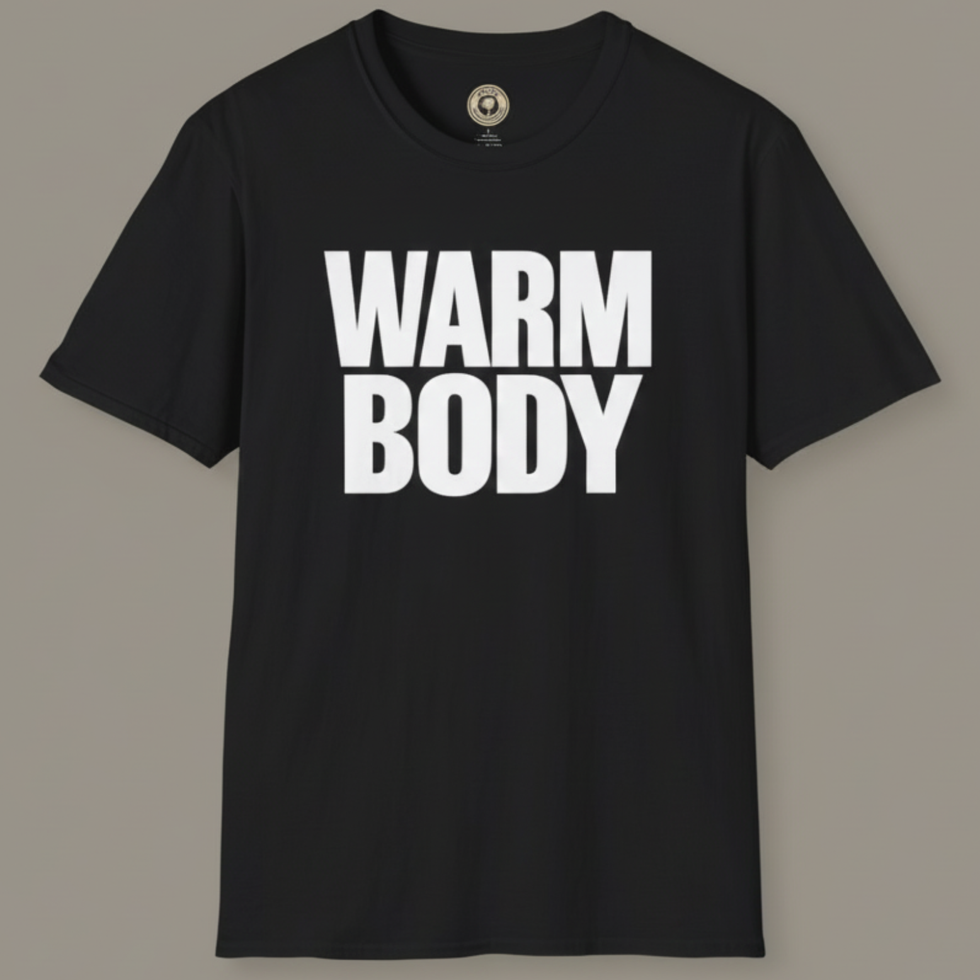 This tee is loud, blunt, and brutally honest — just like the HR memo nobody meant to send you. The stark WARM BODY lettering sits bold on the chest like a workplace confession: you’re not a valued team member… you’re a carbon-based placeholder keeping a chair warm until the next quarterly restructure.